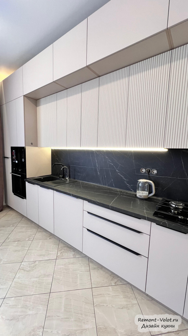 Подводя итог, можно отметить эстетику и функциональность этой кухни в современном прочтении. Светлые фасады создают ощущение пространства, а черный камень добавляет выразительности. Простые линии, интегрированная техника и продуманная подсветка делают интерьер актуальным и долговечным.