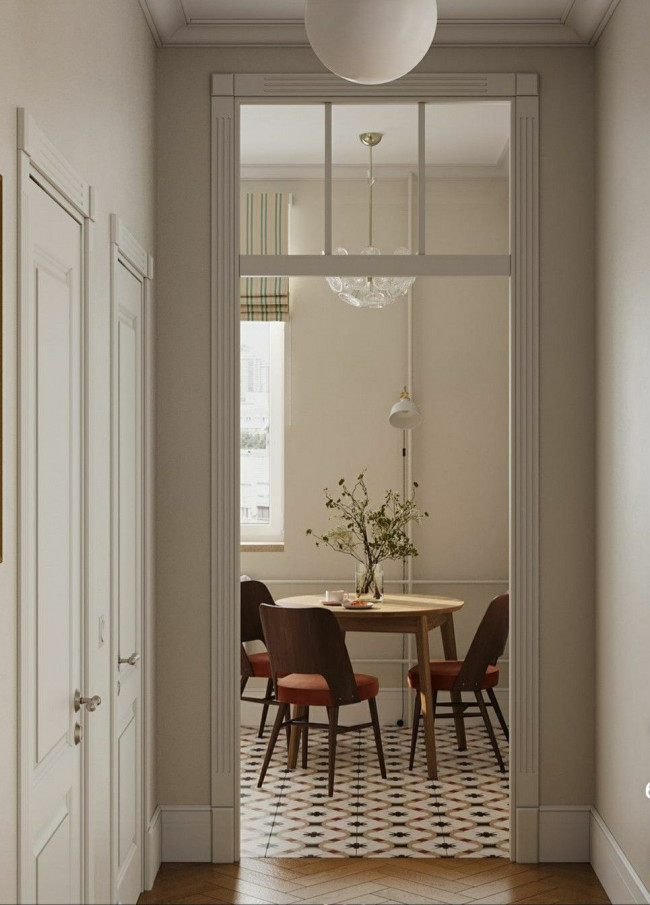 - Архитектурные порталы: Иногда достаточно просто сузить проем или оформить его контрастным материалом, чтобы создать четкую границу между «улицей» и «домом».