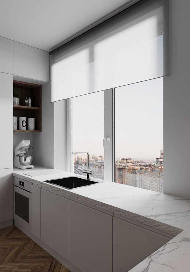 Самый популярный запрос. Такое решение действительно делает кухню светлее и визуально дороже. Но здесь важно не ориентироваться только на картинку.